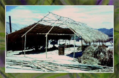 Hut built by Vietnamese at LZ BRONCO, Aug 69.