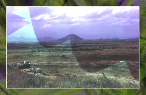 Hill 4-11 looking SE; believed to be remains of old French Fort, Oct 69.
