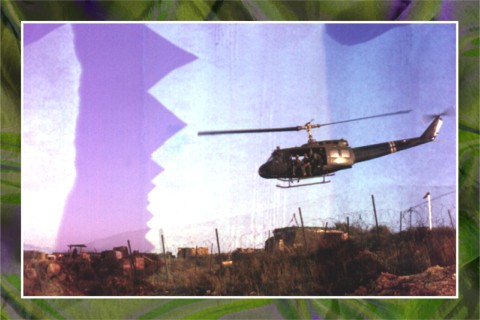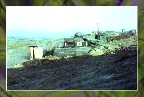 View of chopper pad background, foreground is briefing room early stage Hill 4-11, Oct 69.