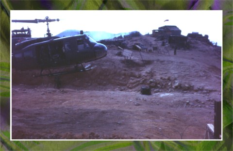 Looking towards the west, a chopper lands on LZ Cork in February, 1969.