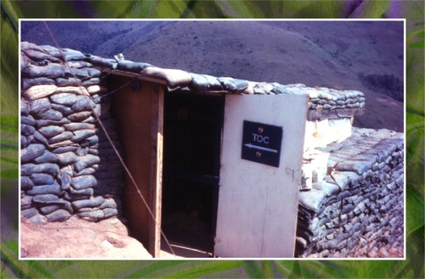 The Tactical Operations Center (TOC), not quite complete, for the 3rd Battalion, 1st Infantry on LZ Cork in February, 1969.