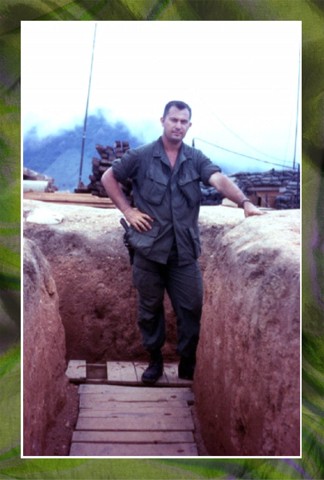This is MSG Huey P. Fautheree in ditch between the bunkers on LZ Cork in Februray, 1969.
