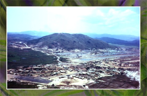 This is a view of LZ Bronco with the airstrip near the top of the photo and Duc Pho at the bottom in February, 1969.