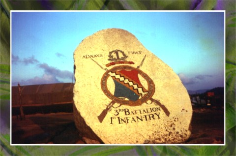 Here is "The Rock" or the 3rd Battalion, 1st Infantry marker at LZ Bronco in February, 1969.