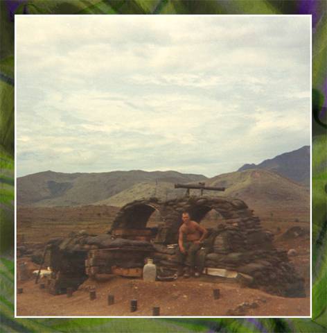 Here is 1LT James R. Wood at the 3rd Platoon's Command Post (CP) bunker on FSB Hill 4-11. The CP bunker had guard positions on top with sleeping positions below. Sometimes a 90mm recoiless rifle was placed on top of the bunker.