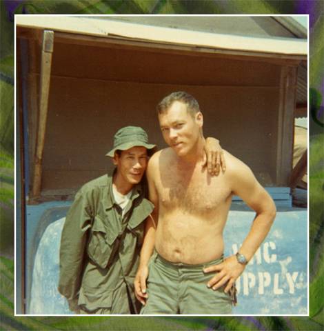 While working as Executive Officer (XO) for HHC, this picture of 1LT James R. Wood and a "Papa San," who worked for the company, was taken in front of the Supply Room for HHC.
