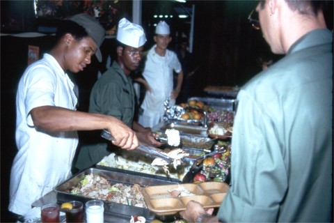 Inside the messhall a plaque welcomes "Gen. Powell" to Howard Johnson's. (July 70)