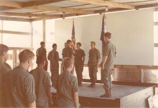 This is an awards ceremony for Bravo Company during a stand-down at LZ Bronco.