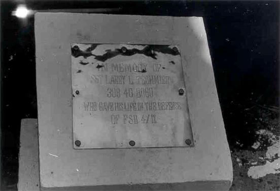 This memorial at the entrance of the TOC was dedicated to SGT Larry Techmeir who lost his life during a