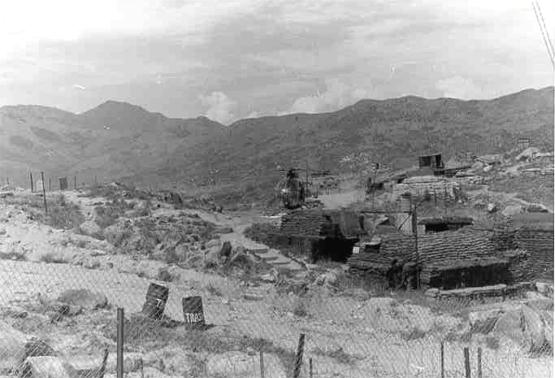 The VIP helipad on FSB Hill 4-11 with a LOH taking off.
