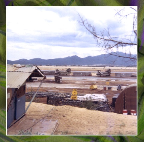 Across the road from the Combat Center is where the airfield was located. Most of the division's air units were stationed there, including the Chinooks. The Chinooks were colloquially called the "Shithooks" and were FSB Hill 4-11's main source of resupplies when the road from Quang Ngai City to the fire support base was closed because of several devasting mine incidents around November, 1970.