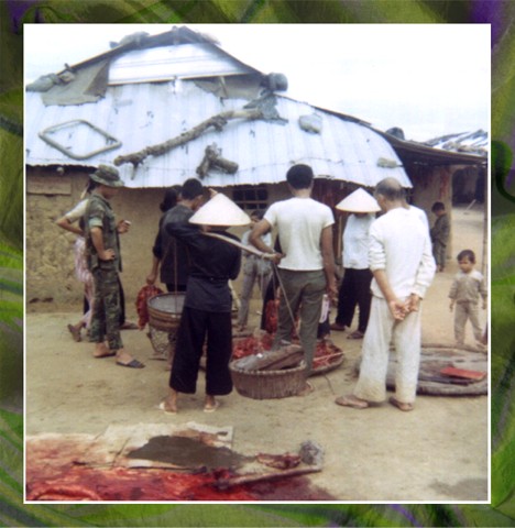 The 3rd Battalion, 1st Infantry, in conjunction with the District Chief and MACV, obtained materials and labor to build the above aid station in Tu My so the villagers would have some source of medical care other than the weekly MEDCAP (Medical Civic Action Program) missions provided by the medical platoon. The medical platoon supplied the local medic with several boxes of medicine and supplies. The next day the local medic and all the supplies were gone. He never returned, and the aid station was never used.